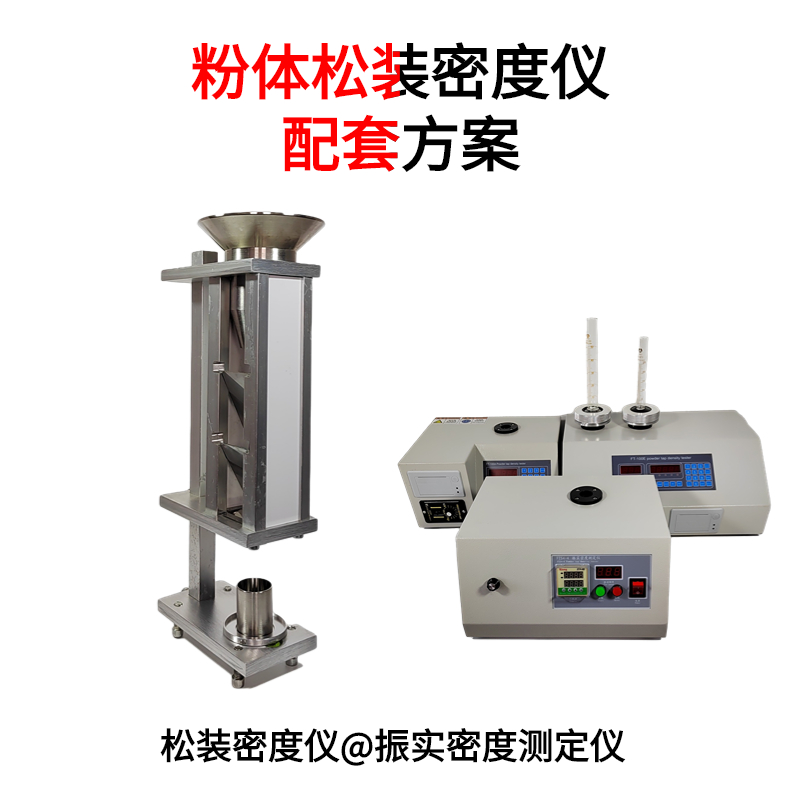 裝置 測定裝置(圖1)頂部為一個裝有1.0mm篩網的粉末漏斗。粉末漏斗下方依次是一個加料漏斗和一個裝有四塊玻璃擋板的擋板箱,待測粉末樣品通過加料漏斗進入擋板箱后,可沿擋板滑動和反*彈,降低下落沖力。擋板箱的底部為一個漏斗狀收集器,使粉末聚集并傾入收集器正下方具有特定容積的樣品接收杯里。樣品接收杯可為圓柱體(容積為25.00ml+0.05ml,內徑為30.00mm±2.00mm)或正方體(容積為16.39ml±0.20ml,內部邊長為25.400mm±0.076mm)。