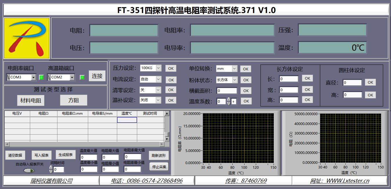 半導體材料的電導率對溫度變化測量要求,測控軟件實時繪制出溫度與電阻,電阻率,電導率數據的變化曲線圖譜,及過程數據值的報表分析.