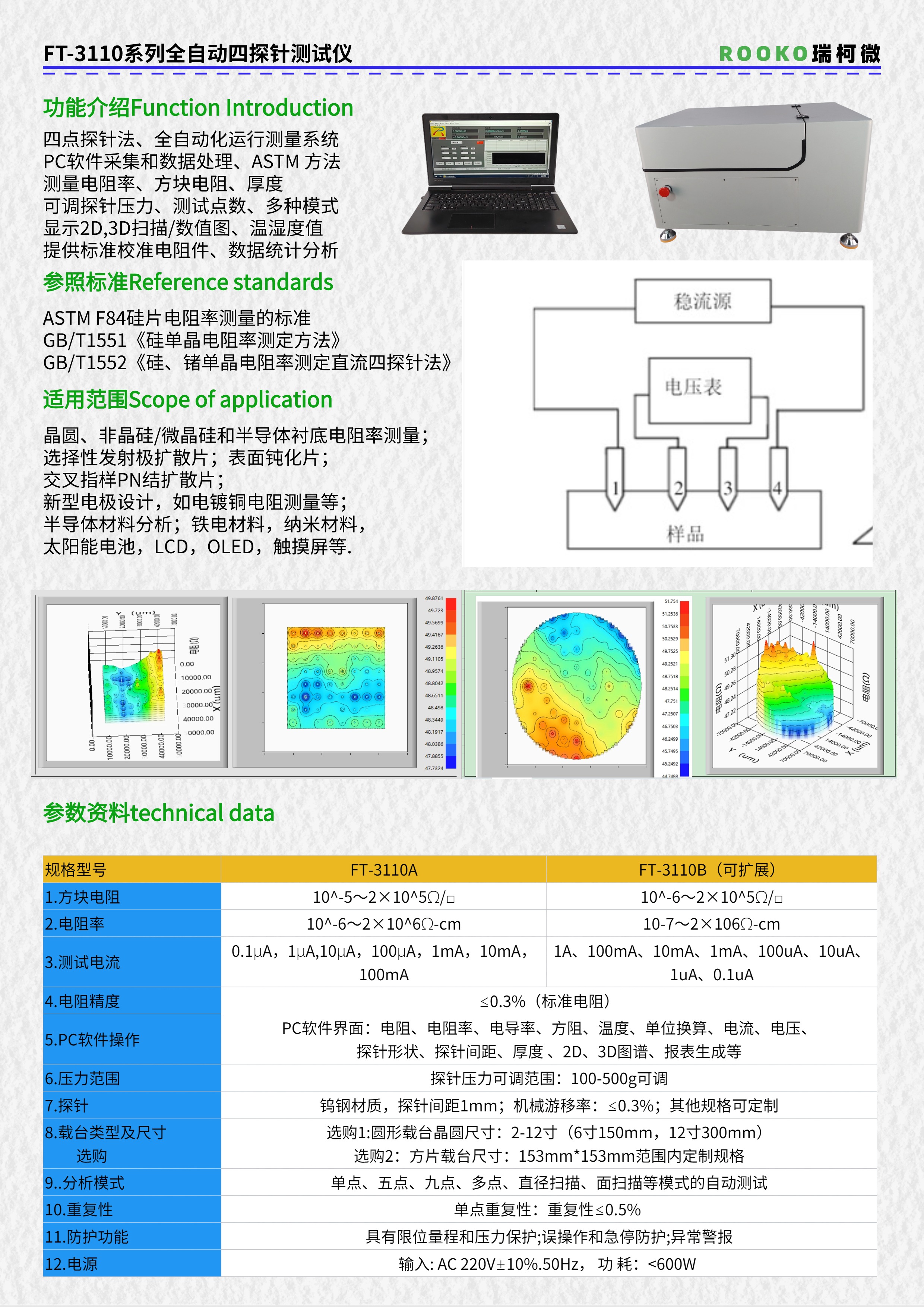 掃描電阻率/方阻測試儀提供2D和3D圖譜分析
