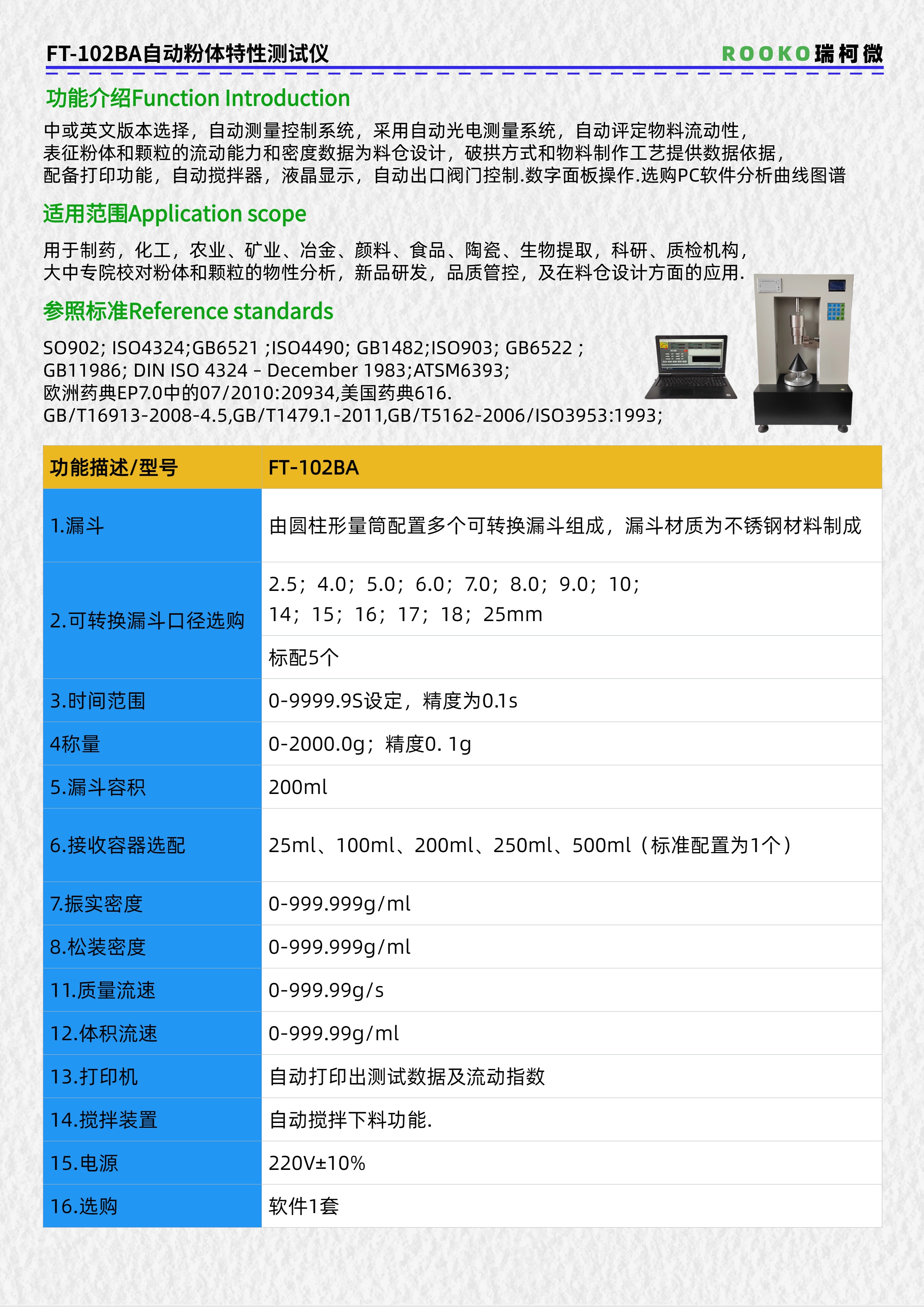 ROOKO瑞柯微專注于粉末/粉體/顆粒流動性測試儀,振實/松裝/堆積密度測定儀,休止角測定儀,安息角測定儀,粉末電阻率測試儀,粉體綜合特性測試儀,四探針/方阻/電阻率測試儀,材料體積/表面電阻率測試儀廠家提供技術資訊和解答