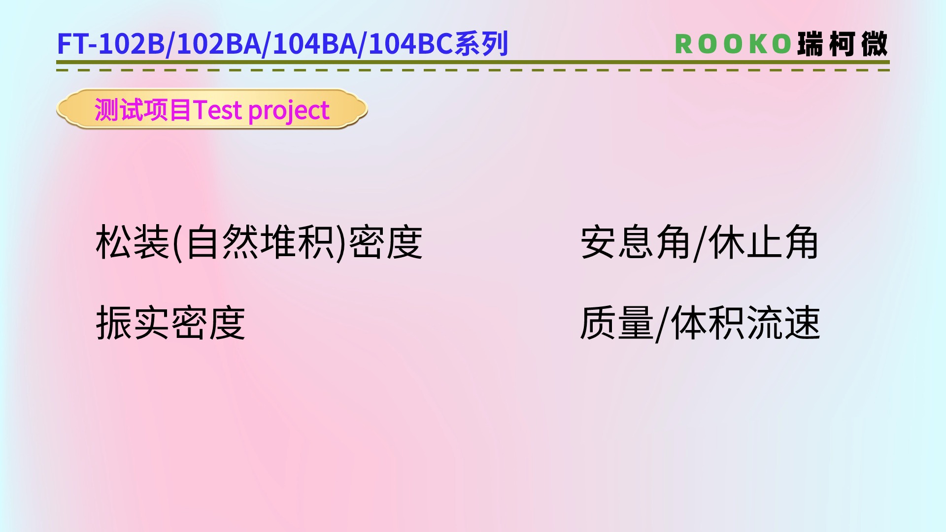 ROOKO瑞柯微專注于粉末/粉體/顆粒流動性測試儀,振實/松裝/堆積密度測定儀,休止角測定儀,安息角測定儀,粉末電阻率測試儀,粉體綜合特性測試儀,四探針/方阻/電阻率測試儀,材料體積/表面電阻率測試儀廠家提供技術資訊和解答