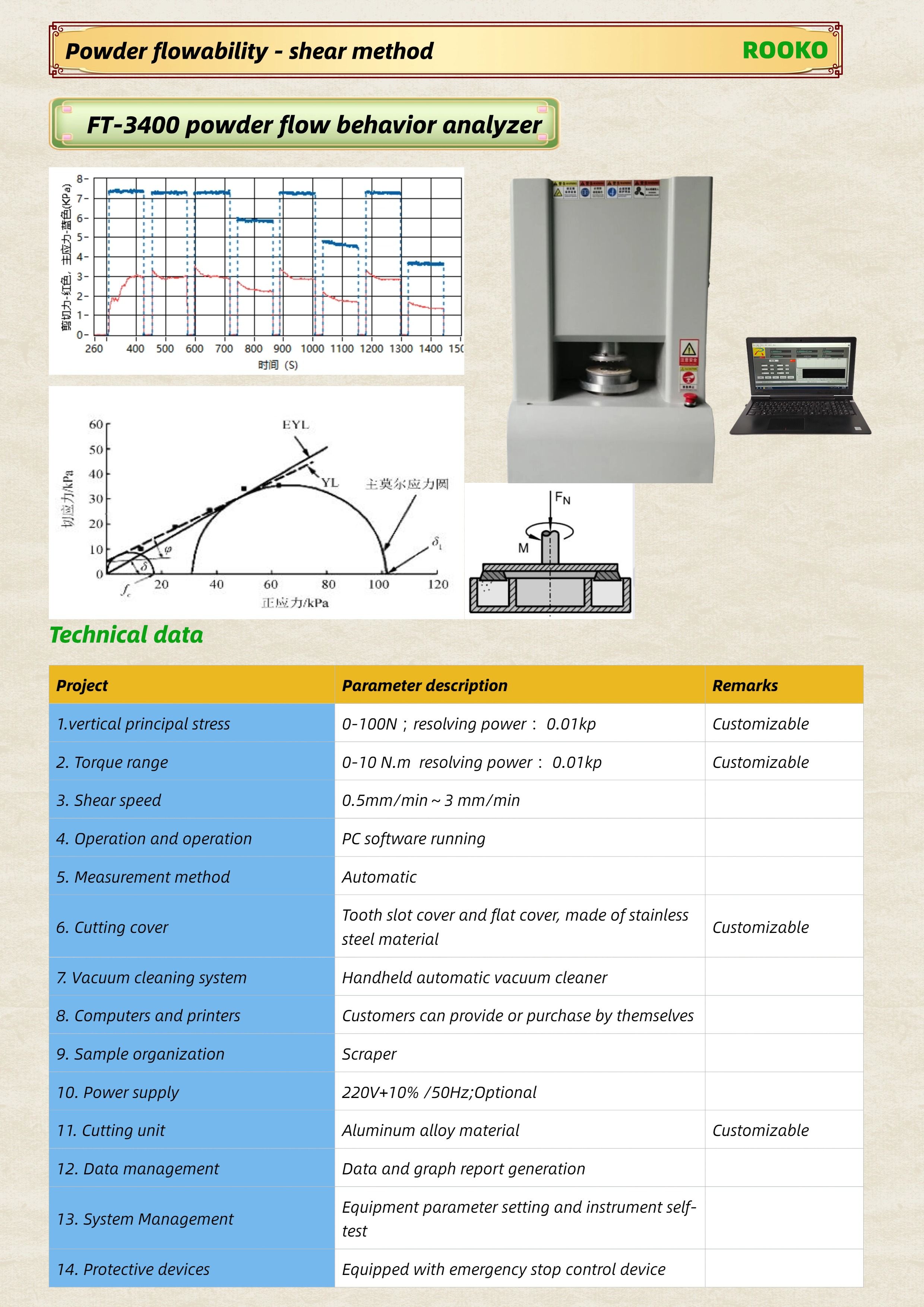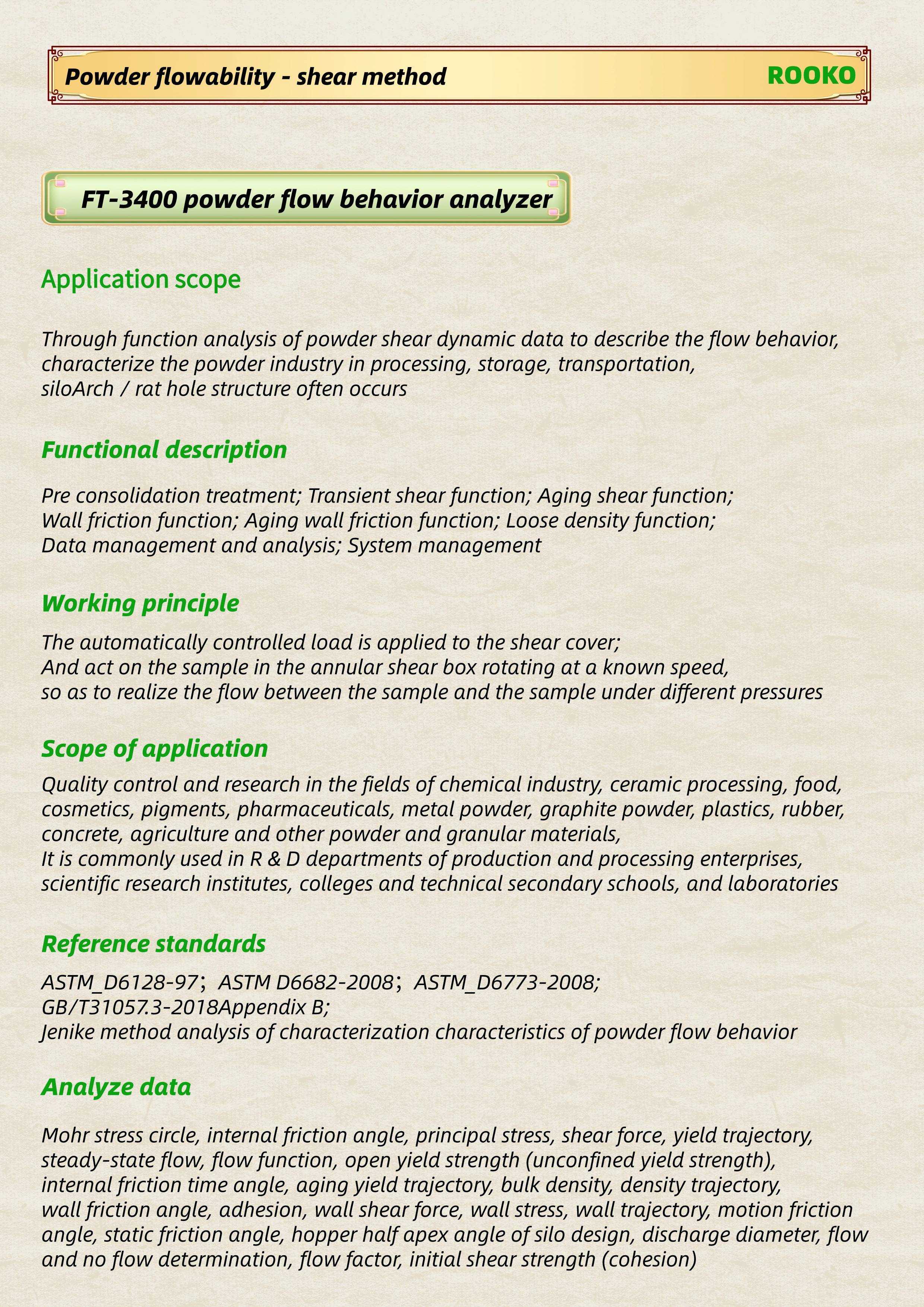 FT-3400 powder flow behavior analyze